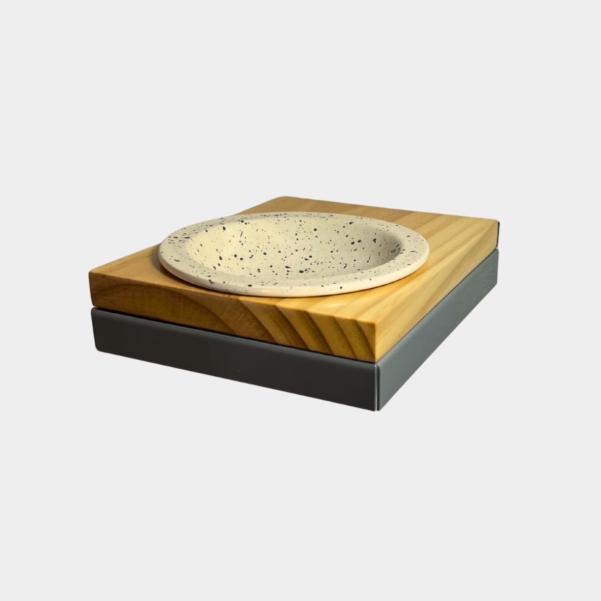 Comedero elevado para instalar en pared. Ideal para incorporar a gimnasios y evitar que perros y niños ingieran la comida del gato, con plato en cerámica, material que no transmite sabor a la comida del gato y que previene y ayuda en el tratamiento de acné felino.