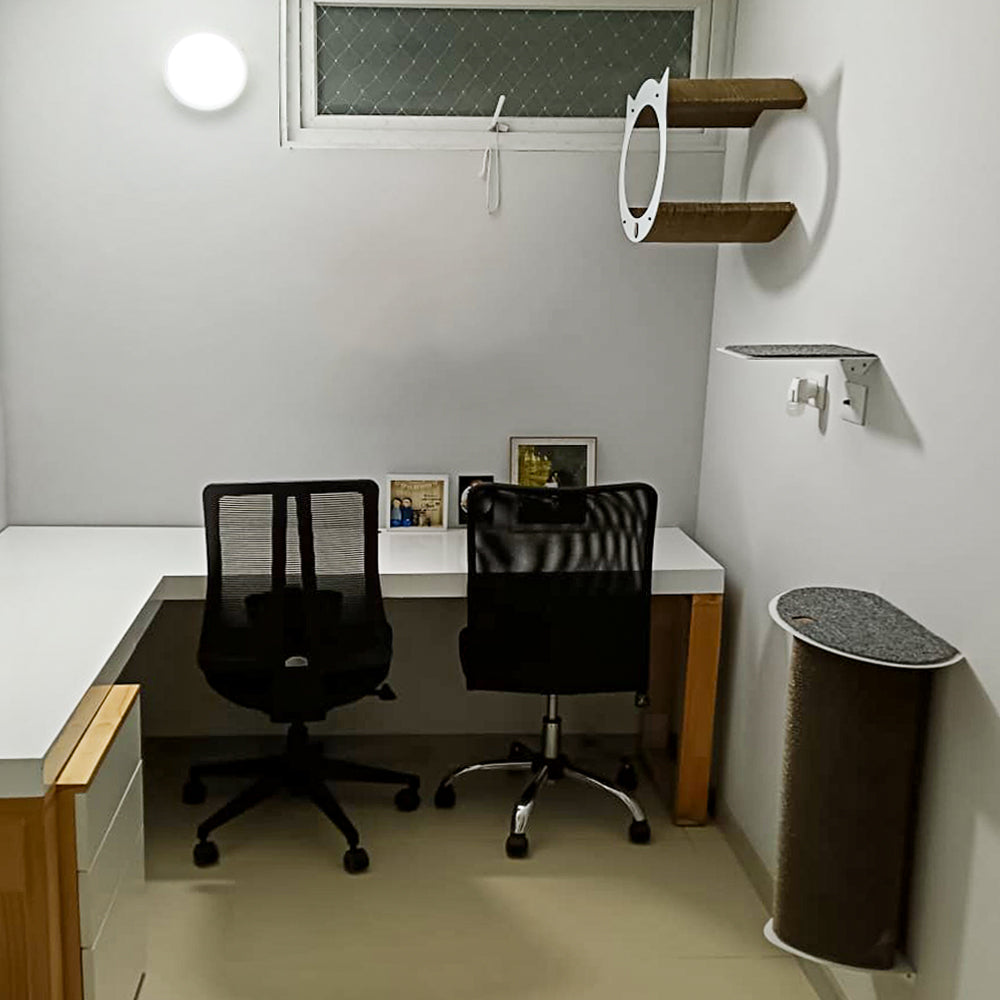Nuestro gimnasio Michi está diseñado para estimular los instintos naturales de tus felinos: trepar, descansar en altura y rasguñar, todo dentro de un concepto innovador que mantiene tus espacios estéticos y sin sobrecarga visual.